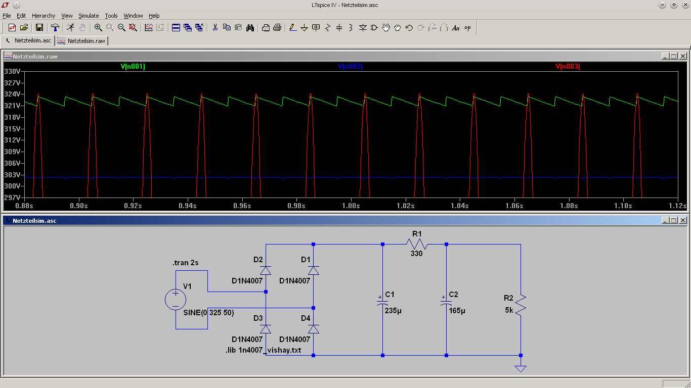 mit dem gegebenen Filterkondensator ein Ripple von ungefähr einem Prozent