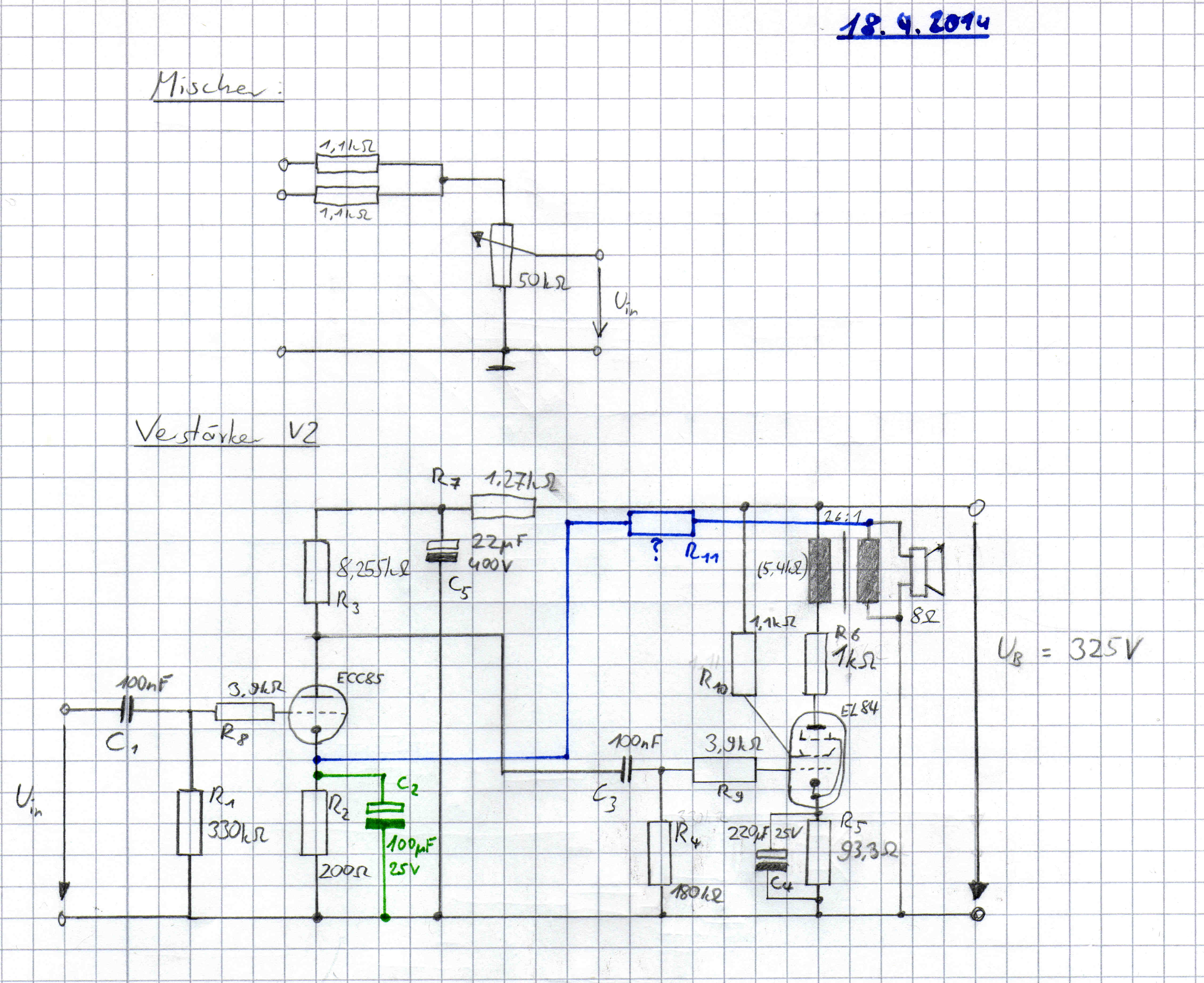 \(R_{11}\) nicht. Mit der Gegenkopplung soll im fertigen Aufbau experimentiert