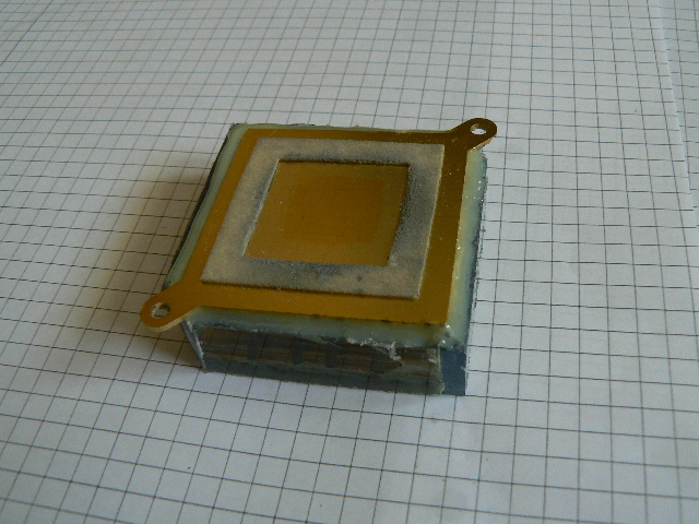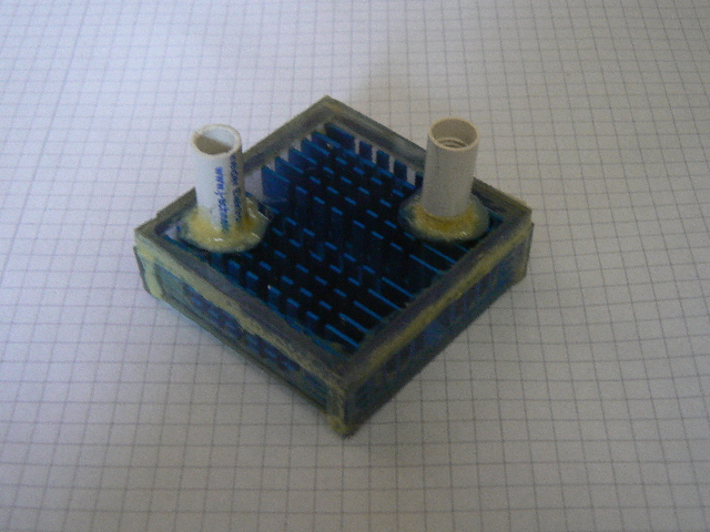 um den Rand des Kühlkörpers geklebt, dann werden die Anschlüsse in den Deckel