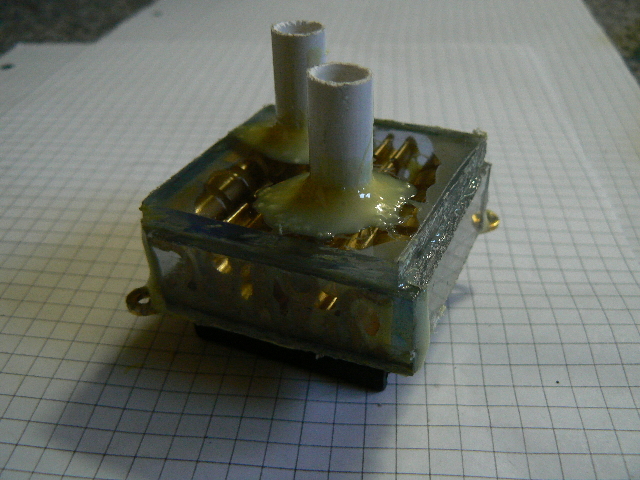 abgesägte Kugelschreiber als Anschlüsse und um das Ganze zu befestigen und