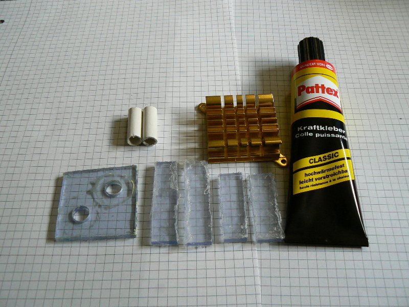 Als Material habe ich Plexiglas verwendet, einen passiven Northbridgekühler,